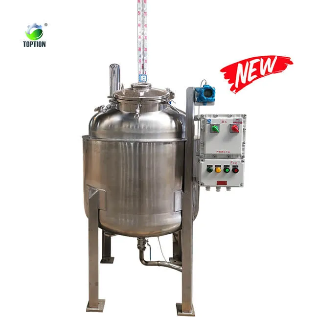 TOPTION zanglamas po'latdan yasalgan saqlash tanki professional moslashtirishni, ikki qavatli, bitta qatlamli va keng imkoniyatlarni moslashtirishni qo'llab-quvvatlaydi, etanolni markazlashtiruvchi ekstraktsiyadan oldin spirtli ichimliklarni oldindan muzlatish uchun, muzlashdan oldin ta'sirga erishish uchun ikki qavatli, mos sovutgichni tanlang. Filtrlashdan keyin suyuqlikni saqlash uchun bir qavatli saqlash tanki tanlanadi, u asosan barqaror va uzluksiz ovqatlanish maqsadiga erishish uchun evaparatorga kirishdan oldin buferlash uchun ishlatiladi.
